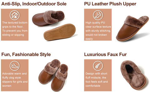 【High Quality Comfy House Shoes】Made with waterproof PU leather upper, it's easy to clean. Super comfortable for women, indoor or outdoor ues. Whether having a rest in bedroom, fetching mail or walking.